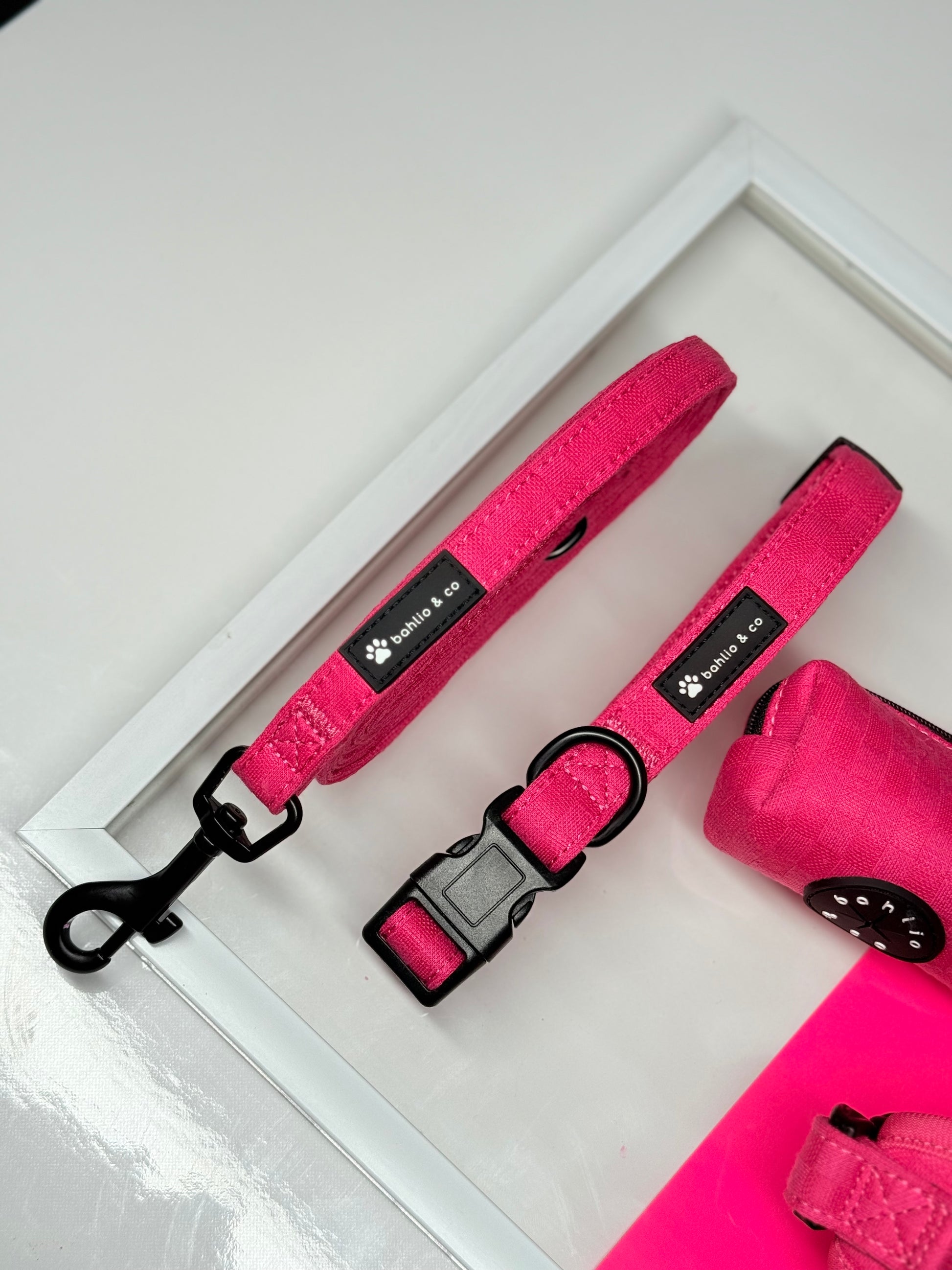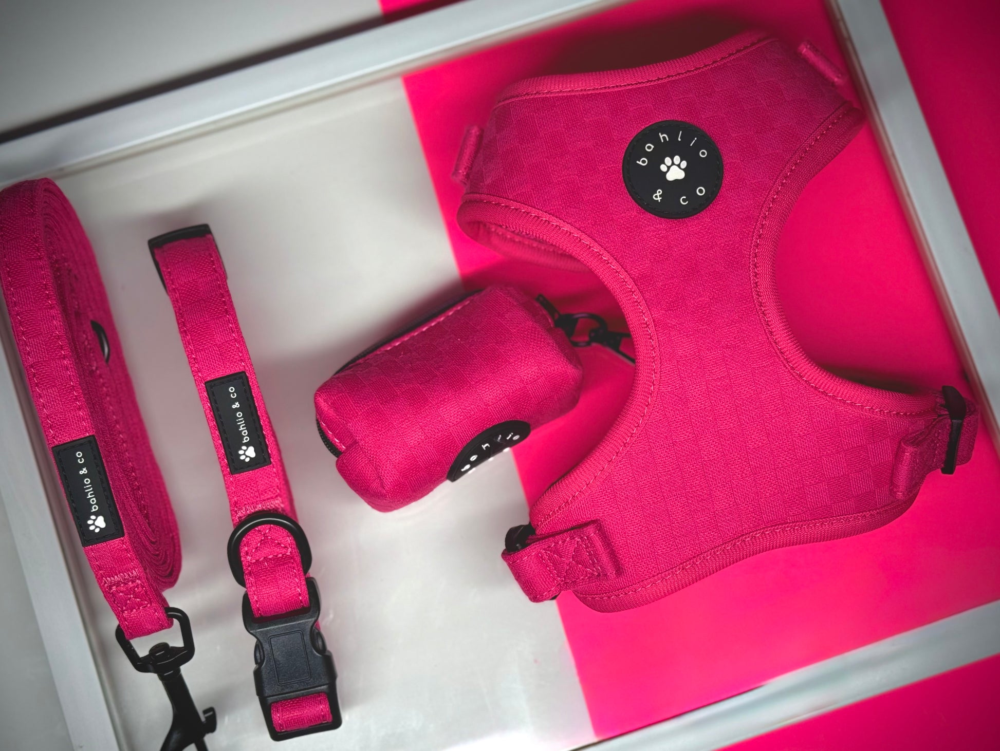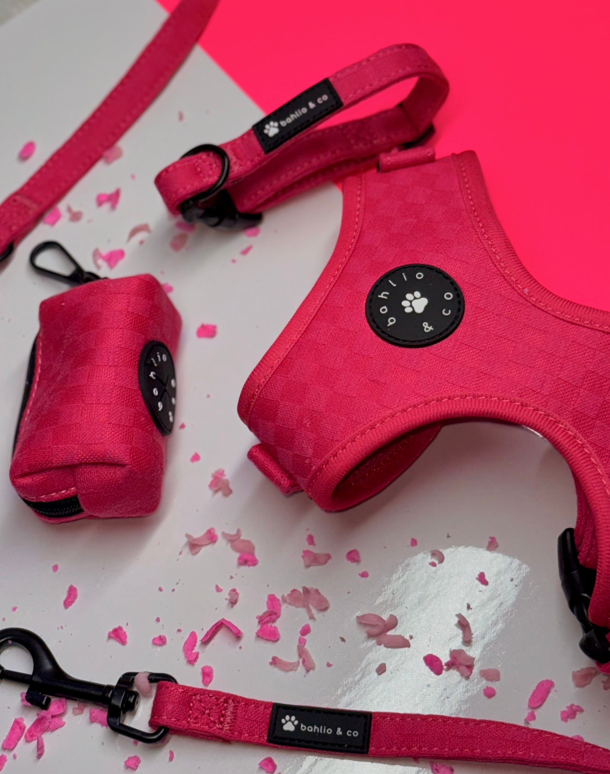 L’ensemble Rosalia rose de Bahlio & Co incarne l’élégance, la qualité et le style à chaque promenade. Pensé pour les chiens qui aiment briller et les humains qui apprécient les accessoires pratiques et raffinés, cet ensemble allie beauté et fonctionnalité dans les moindres détails.