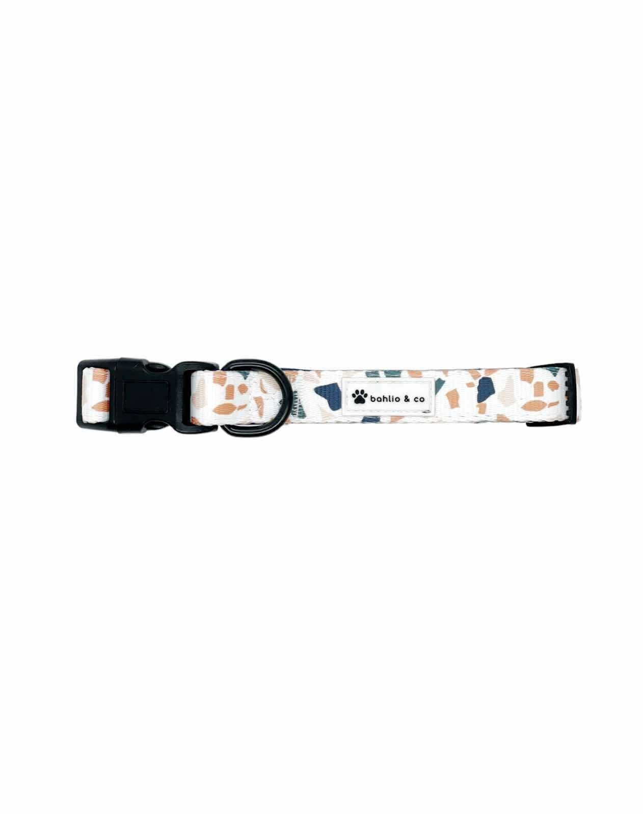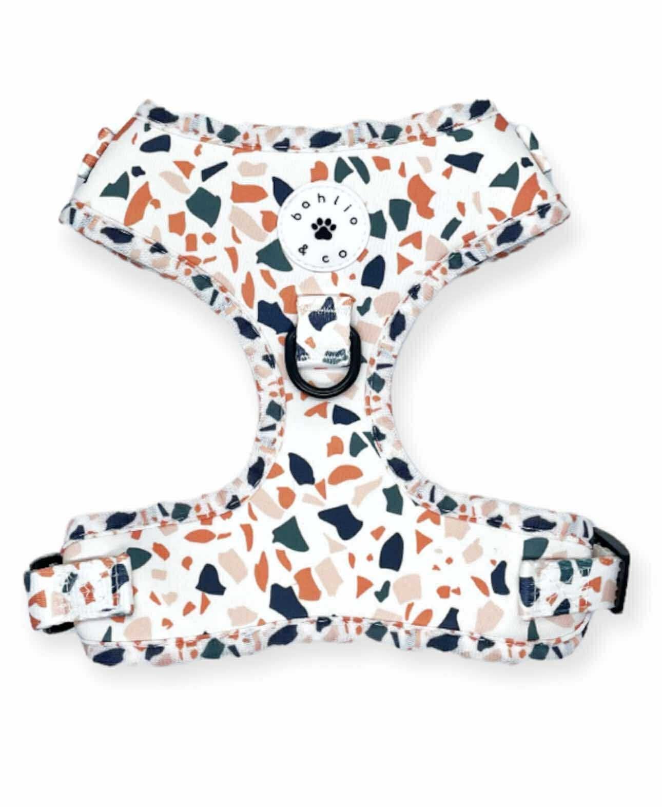 Offrez à votre chien le combo parfait ! Chic, pratique et confortable, notre ensemble terrazzo comprend un harnais ajustable, une laisse résistante, un collier élégant et un sac à crottes assorti.